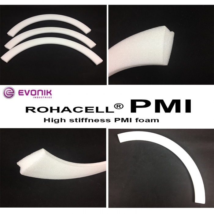 ROHACELL PMI foam and uses special carbon fiber laminated structure. Both the